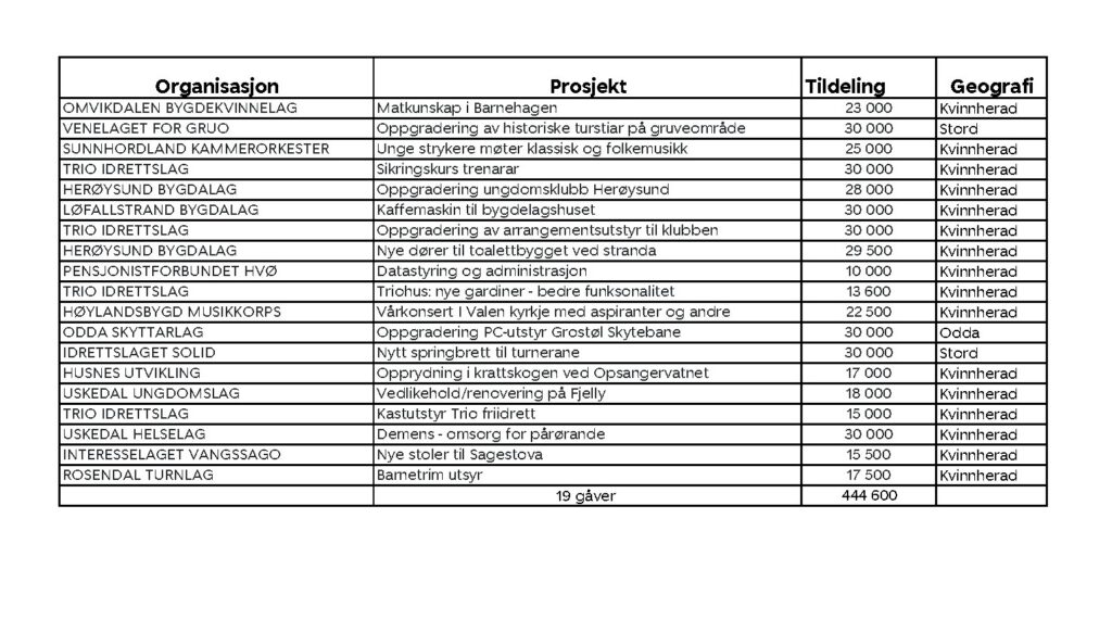 Tusen takk til alle lag, foreiningar og eldsjeler som no set desse midlane i arbeid.